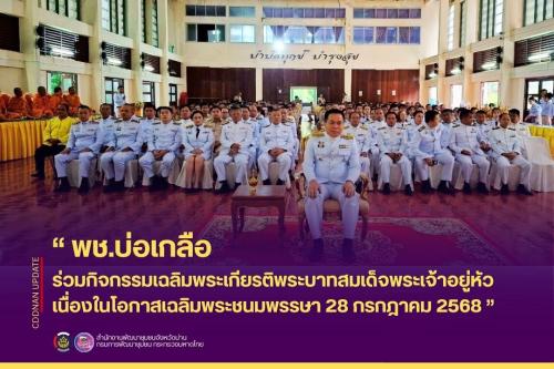 วันที่ 28 กรกฎาคม 2568 อำเภอบ่อเกลือ โดยนายวุฒิพงษ์ แก้วปาเฟือย นายอำเภอบ่อเกลือ เป็นประธานในพิธีเฉลิมพระเกียรติพระบาทสมเด็จพระเจ้าอยู่หัว เนื่องในโอกาสวันเฉลิมพระชนมพรรษา 28 กรกฎาคม 2568 พร้อมด้วยหัวหน้าส่วนราชการ กำนันผู้ใหญ่บ้าน ผู้แทนภาคส่วนต่าง ๆ และประชาชนอำเภอบ่อเกลือเข้าร่วมกิจพิธี เพื่อแสดงความจงรักภักดีและน้อมสำนึกในพระมหากรุณาธิคุณอันหาที่สุดมิได้ของพระบาทสมเด็จพระเจ้าอยู่หัวที่ทรงปฏิบัติพระราชกรณียกิจนานัปการเพื่อความผาสุกของประชาชนชาวไทยอย่างยั่งยืน ณ หอประชุมที่ว่าการอำเภอบ่อเกลือจังหวัดน่าน โดยมีกิจกรรม ดังนี้