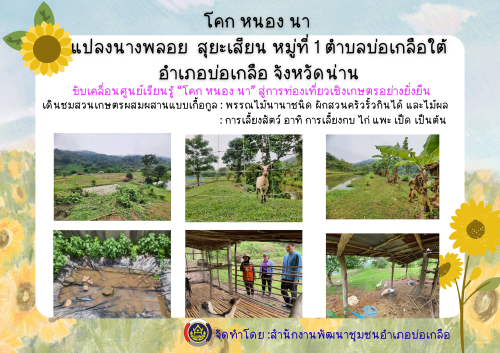 "โคก หนอง นา" แปลงนางพลอย สุยะเสียน หมู่ที่ 1 ตำบลบ่อเกลือใต้ อำเภอบ่อเกลือ จังหวัดน่าน